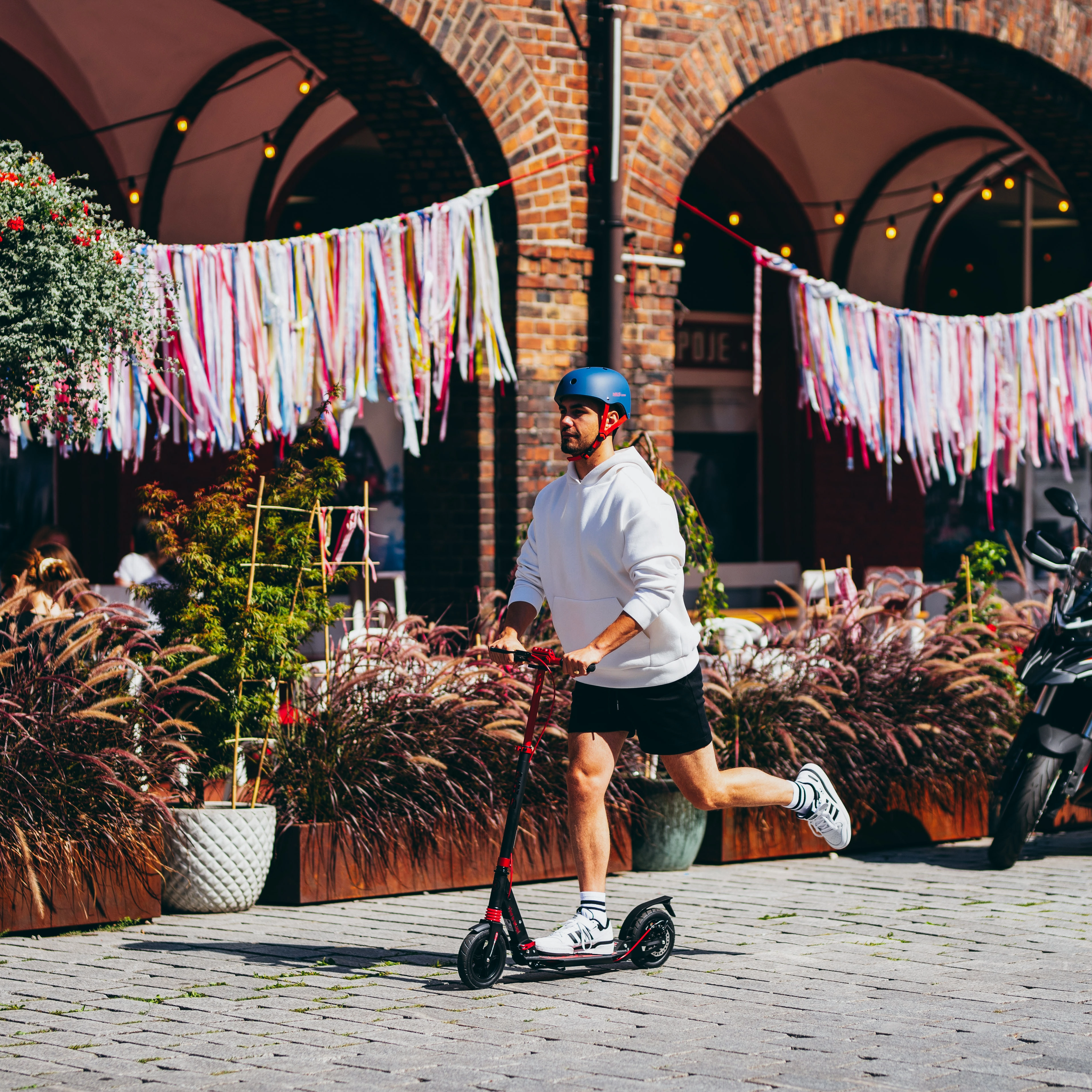 Prednji i stražnji amortizer učinkovito upijaju neravnine gradskih ulica. U kombinaciji s pneumatskim 200 mm kotačima vozite glatkije i s manje umora.