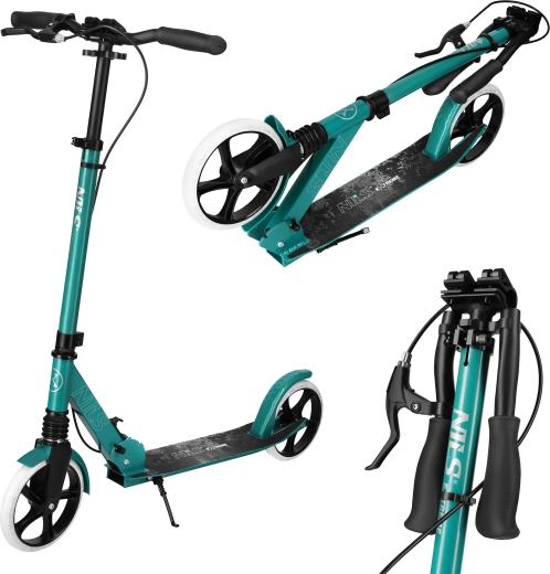 Lagan i izdržljiv romobil NILS Extreme HM185 od aluminija nudi glatku i tihu vožnju zahvaljujući ležajevima ABEC 9 i velikim 200 mm PU kotačima. Prednji ovjes ublažava neravnine, a ručna i stražnja nožna kočnica povećavaju sigurnost. Zahvaljujući sklopivoj konstrukciji, visinski podesivim upravljačima i postolju idealan je za grad i kraće izlete. Nosivost 100 kg, masa samo 4,1 kg.
