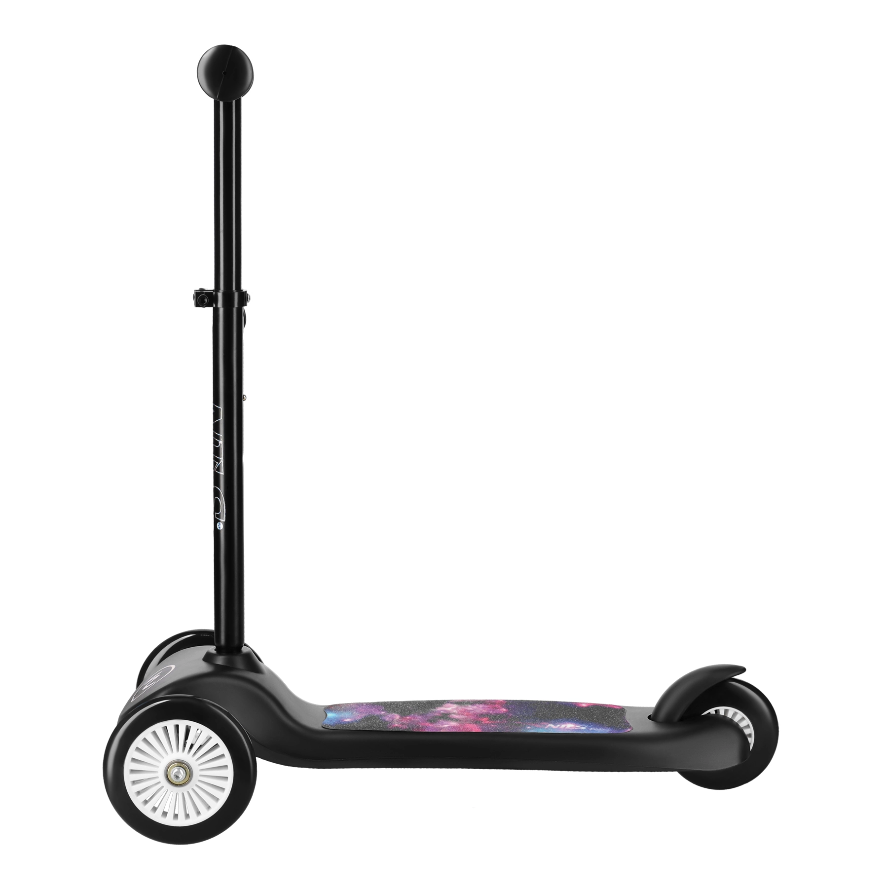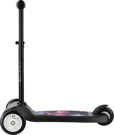 Deck s atraktivnim galaktičkim motivom, kotači od izdržljivog PVC-a i ležajevi ABEC 5 pružaju glatku vožnju po pločniku i blago neravnim površinama. Robusna konstrukcija od PP-a, aluminija i čelika nosi do 50 kg, pa će romobil trajati djetetu godinama. Zahvaljujući težini od samo 2,1 kg lako ga nose i djeca i roditelji.