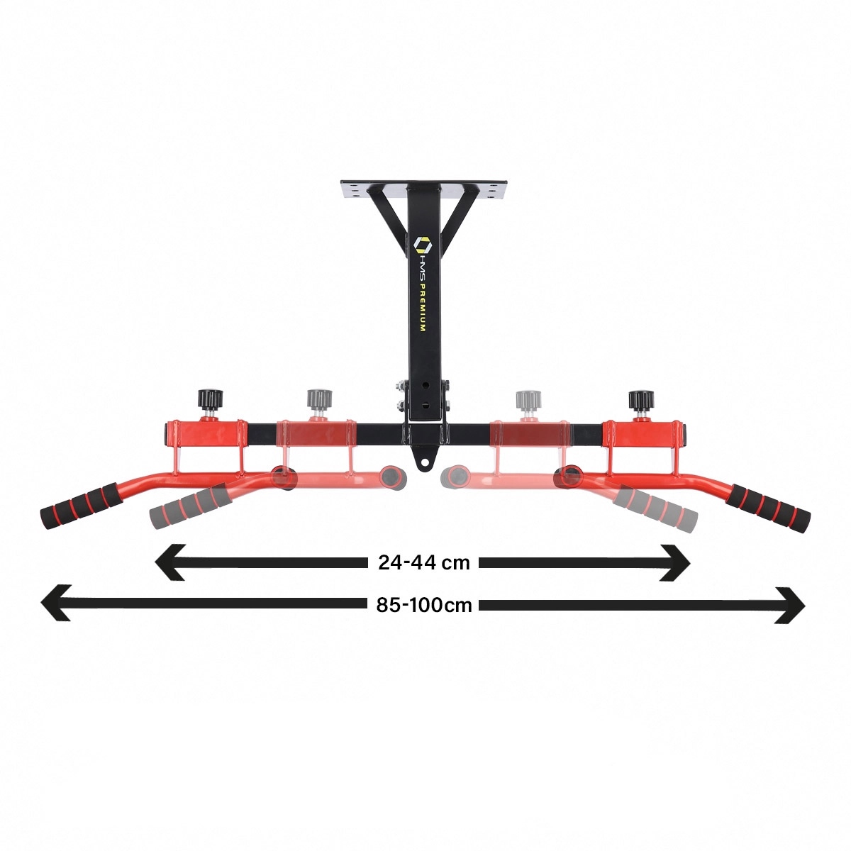Univerzalna šipka HMS PREMIUM DD10 za montažu na zid i strop štedi prostor i nudi široke mogućnosti treninga. Omogućuje zgibove nadhvatom, podhvatom i neutralnim hvatom, ima podesiv razmak ručki (5 pozicija) i protuklizne gumene ručke za sigurnost i udobnost. U kompletu je držač za boksačku vreću, pa dobivate 2 u 1 rješenje za kućnu teretanu. Stabilna čelična konstrukcija sa 6 montažnih otvora i nosivošću 150 kg osigurava pouzdanost pri vježbanju.