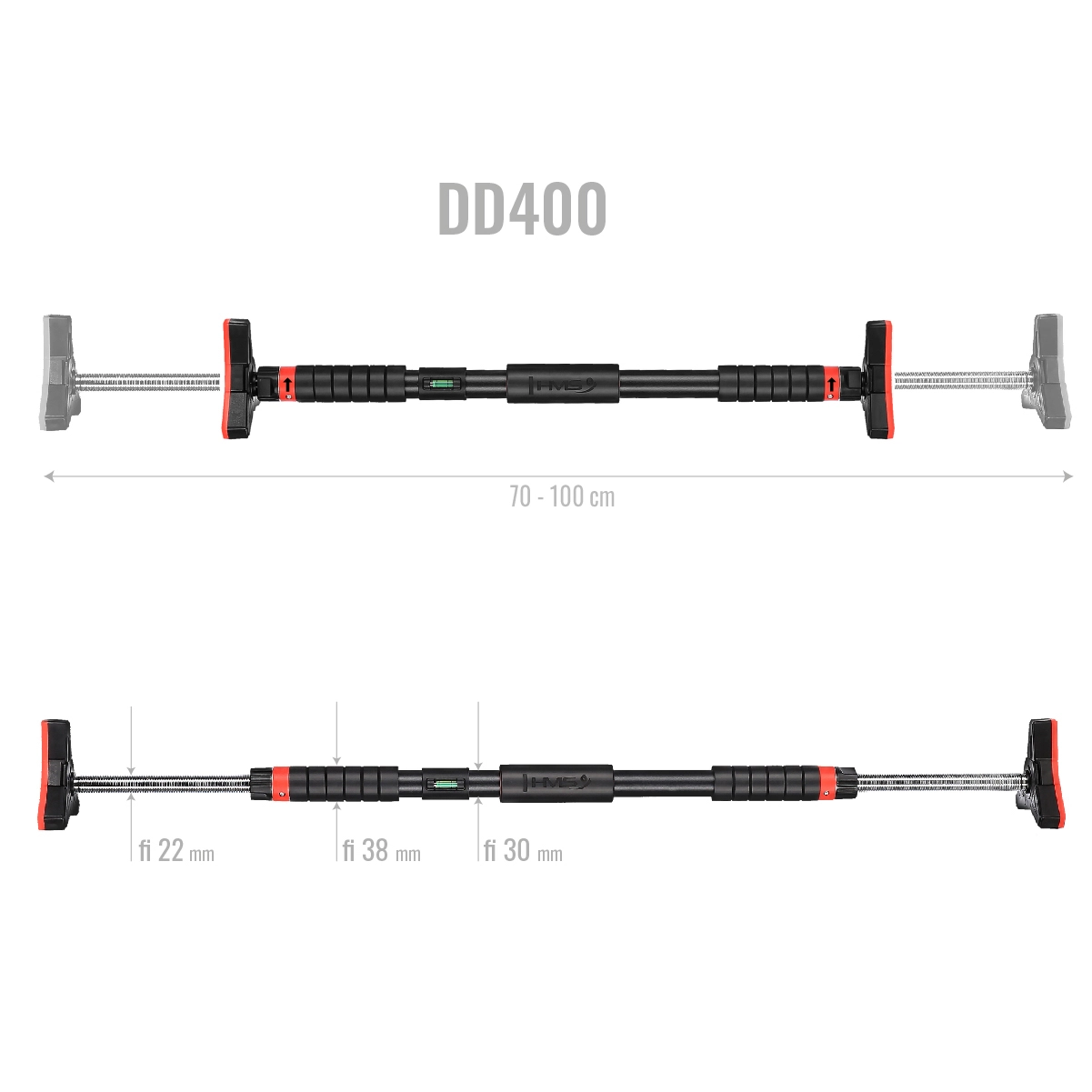 HMS DD400 je pouzdana šipka za vrata za učinkovito jačanje leđa, ramena, trbuha i prsa. Glavno čelično tijelo s antikorozivnom obradom i plastificiranim premazom osigurava visoku izdržljivost, dok mekani EVA rukohvati odlično upijaju znoj i pružaju siguran hvat. Zahvaljujući integriranom libelu, šipku lako poravnavate za maksimalnu sigurnost.