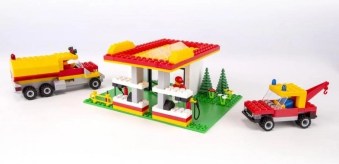 Sagradite benzinsku postaju s detaljima koje djeca vole – pumpe, nadstrešnice i ukrase. Scenarij pun stajališta za točenje goriva i servis vozila.
