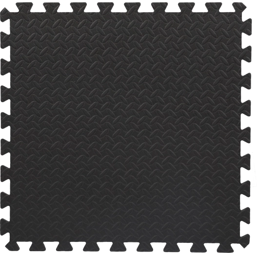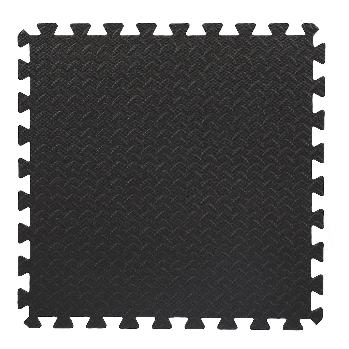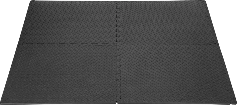 Osnovno pakiranje sadrži 4 kvadratna dijela i 8 završnih letvica od kojih složite površinu 120 × 120 cm debljine 12 mm – idealno za jedan stroj, klupu ili kut radionice. Materijal EVA je lako periv, otporan na vlagu i pruža učinkovito prigušivanje udaraca i vibracija, primjerice pri ispuštanju utega ili odlaganju alata.