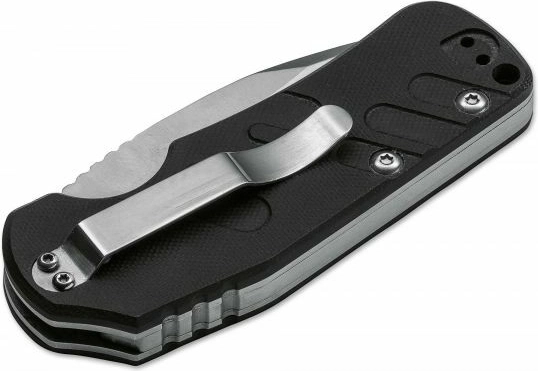 Ergonomska drška od G10 u crnoj boji je izdržljiva, ugodno hrapava i ne klizi ni u mokrim uvjetima. Praktična kopča za džep i otvor za vezicu olakšavaju svakodnevno nošenje i brz pristup.