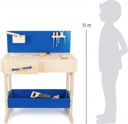 Drveni radni stol nudi djeci mogućnost oponašanja stvarnog rada s alatima, razvijajući njihovu finu motoriku i maštu. Stol je opremljen raznim alatima kao što su pila i čekić.