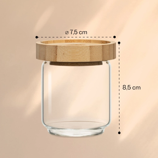 Pretvorite organizaciju kuhinje u dizajnerski detalj. Posuda za pohranu Klarstein kombinira kvalitetno staklo i prirodni bambus u elegantno i održivo rješenje za svakodnevnu upotrebu. Manji volumen od 200 ml savršen je za porcije začina, čajeva, sjemenki ili instant kave, a čist izgled pristaje modernim i tradicionalnim kuhinjama.
