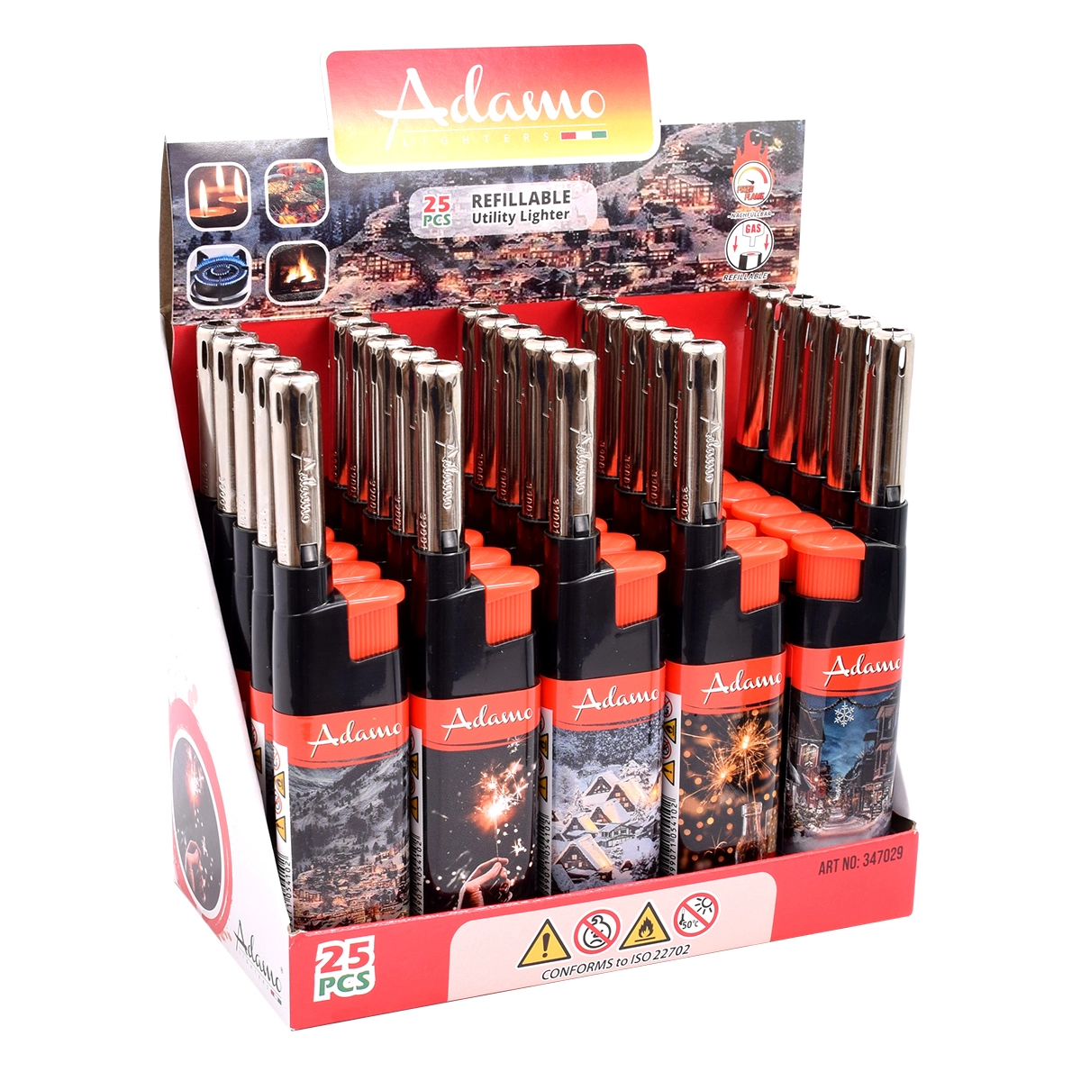 Upaljač FireLight Adamo Winter Time spaja udobnost i stil. Zahvaljujući ugodnoj visini od cca 11,5 cm dobro leži u ruci i lako se koristi. Čvrsta, nepreklopna konstrukcija osigurava izdržljivost i dug vijek trajanja, dok mogućnost ponovnog punjenja štedi novac i okoliš.