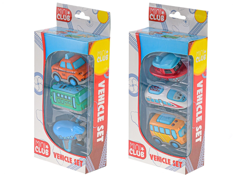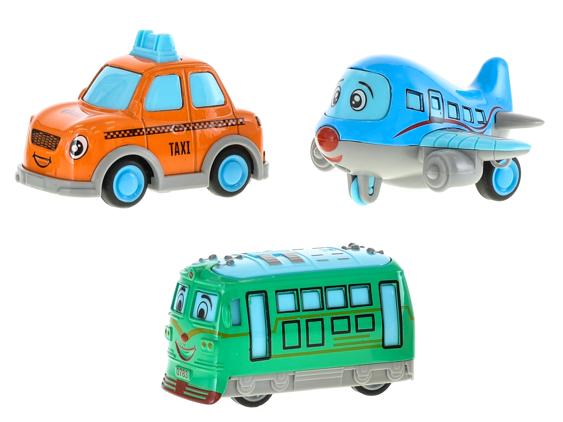 Svako pakiranje sadrži 3 vozila i dostupno je u 2 varijante – jedna s avionom, druga s brodom. Sigurni, zaobljeni oblici i čvrsta konstrukcija od metala i plastike jamče dug vijek trajanja i pri svakodnevnoj upotrebi.