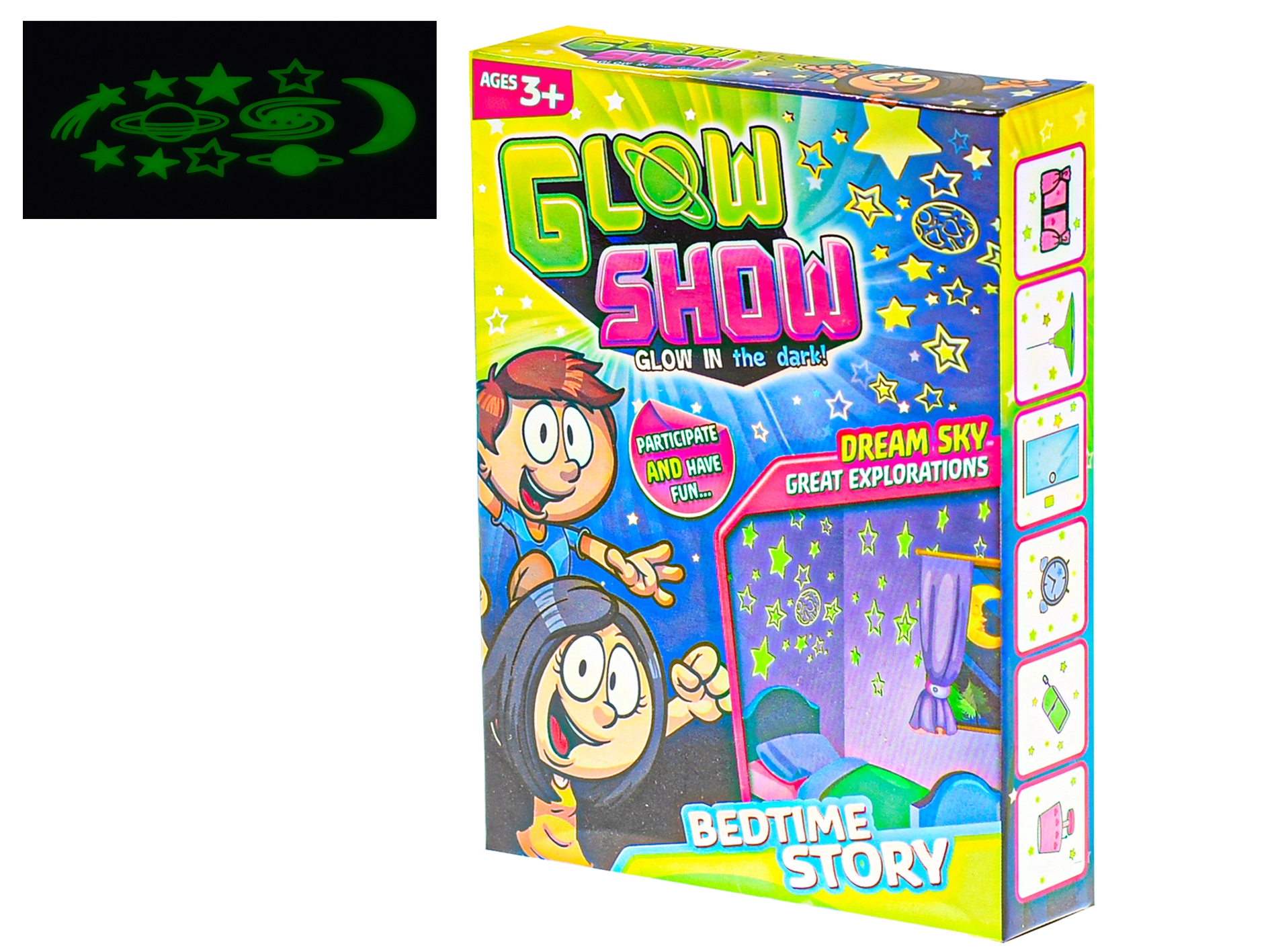 Pretvorite dječju sobu u čarobno noćno nebo. Ovaj set sadrži 15 samoljepljivih dekoracija koje se nakon dnevnog izlaganja svjetlu prekrasno svijetle u mraku. Jednostavno postavljanje na zid i strop, siguran materijal i trenutan efekt bez bušenja i nereda.