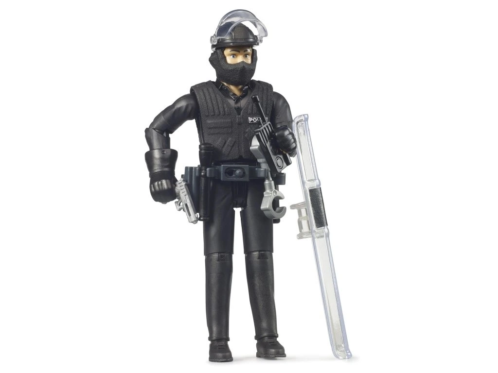 Figurica BRUDER Bworld policajac interventne jedinice donosi djeci autentičan doživljaj svijeta sigurnosnih službi. Zahvaljujući detaljnoj izradi i funkcionalnoj opremi djeca mogu stvarati vlastite priče i vježbati socijalnu interakciju. Pokretni dijelovi tijela olakšavaju pozicioniranje, a ruke prilagođene za hvatanje omogućuju jednostavno baratanje priloženom opremom.