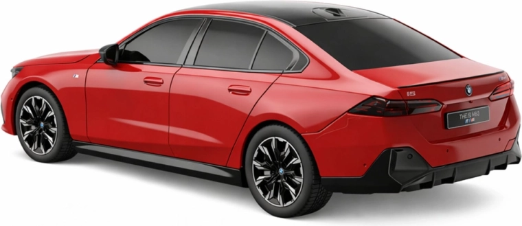 Vjerno oblikovane linije karoserije BMW i5, sportski detalji i elegantna crvena izvedba za autentičan doživljaj vožnje i izlaganja.