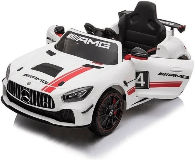 Stilski dječji električni autić MERCEDES‑BENZ GT4 u bijeloj boji nudi realističan izgled, roditeljski daljinski upravljač 2,4 GHz, mekani start i odabir dviju brzina. Zahvaljujući vratima koja se otvaraju, LED svjetlima, MP3/USB reproduktoru i tihim EVA kotačima pruža sigurnu i zabavnu vožnju u kući i na otvorenom.