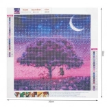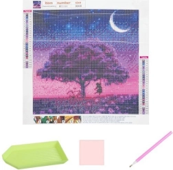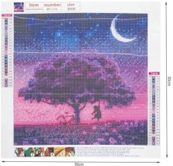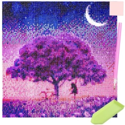 Motiv stabla u ružičasto‑ljubičastim tonovima s polumjesecom stvara očaravajući sjajni efekt koji dolazi do izražaja i u okviru i bez njega. Dijamantno slikanje idealno je za smirivanje uma, razvoj fine motorike i kreativnosti – prikladno za početnike i napredne.