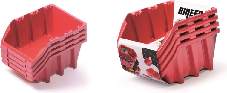 Set spremnika BINEER Long donosi jednostavno rješenje za održavanje reda u radionici, uredu i kućanstvu. Crveni spremnici olakšavaju brzu orijentaciju, a zahvaljujući praktičnim dimenzijama 295 × 198 × 195 mm lako ih smjestite u regale, na police ili u ormariće.