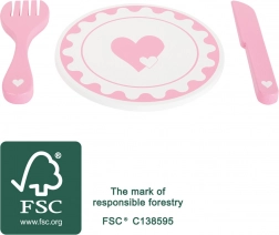 Mali drveni set dekoriran je srcima i izrađen je od 100% certificiranog FSC® drveta. Djecu ne samo da će oduševiti lijep dizajn, nego će naučiti i nešto o ekologiji i održivosti.