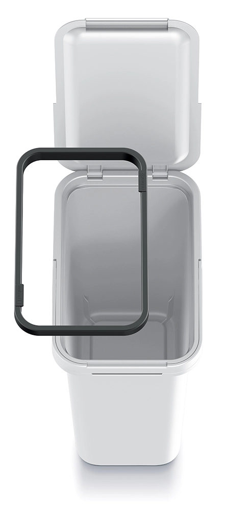 Preklopni poklopac omogućuje brzo i higijensko odlaganje otpada bez neugodnih mirisa. Integrirani unutarnji okvir čvrsto drži vrećicu, sprječava njezino klizanje i pojednostavljuje zamjenu.