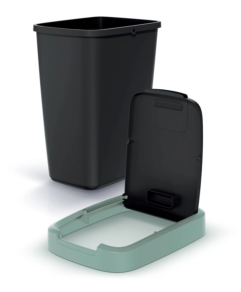Izdržljiva plastika s mat površinom lako se čisti, a elegantna crno–mint kombinacija uklapa se u moderne interijere. Zahvaljujući pravokutnom, blago koničnom obliku kanta štedi prostor i ostaje stabilna i u užim prostorima.