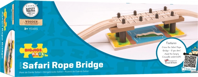 Priredite djeci napetu safari pustolovinu. Robusni viseći most s tiskom rijeke i izvadivim krokodilom dodat će svakoj drvenoj željezničkoj pruzi dojmljiv element koji potiče maštu te razvija finu motoriku i koordinaciju.