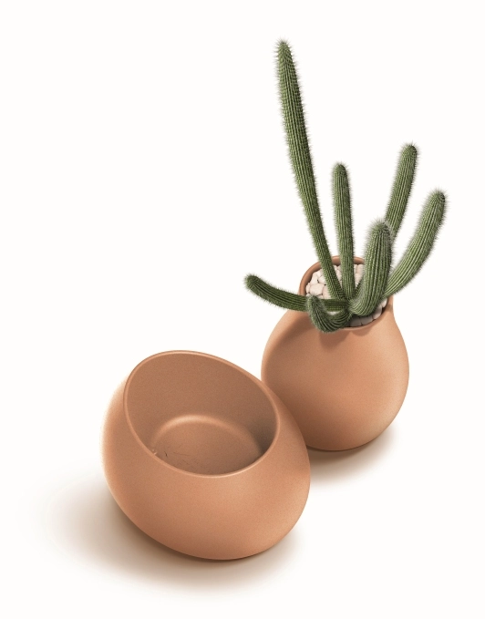 Zaobljena silueta nalik vazi i mat tekstura prostoru daju čist, elegantan izgled te naglašavaju zelenilo i dekorativne aranžmane.