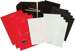 - Sadržaj seta: 16 strugalica (cca 21,5 × 14 cm), 2 drvene olovke, šablone, 3 postolja za izlaganje.