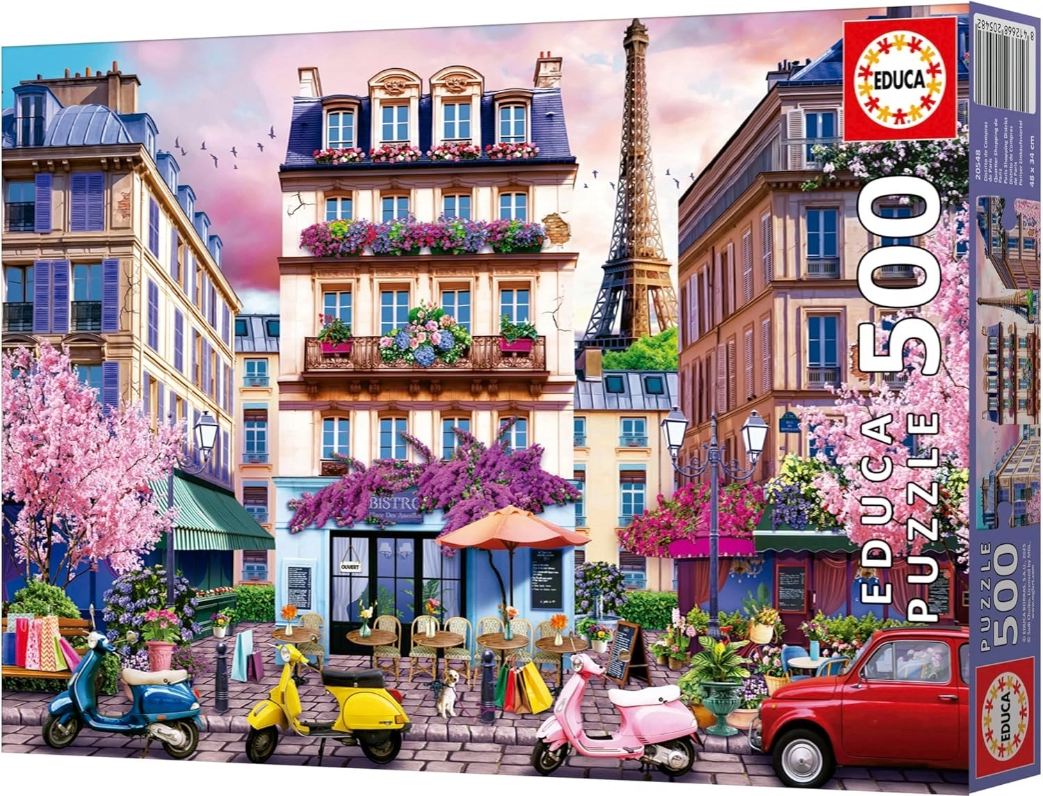 Uživajte u opuštanju s kvalitetnim puzzleom EDUCA s motivom pariške trgovačke četvrti. Pakiranje sadrži 500 dijelova te dodatno ljepilo gratis za jednostavno fiksiranje gotove slike dimenzija 48 × 34 cm.