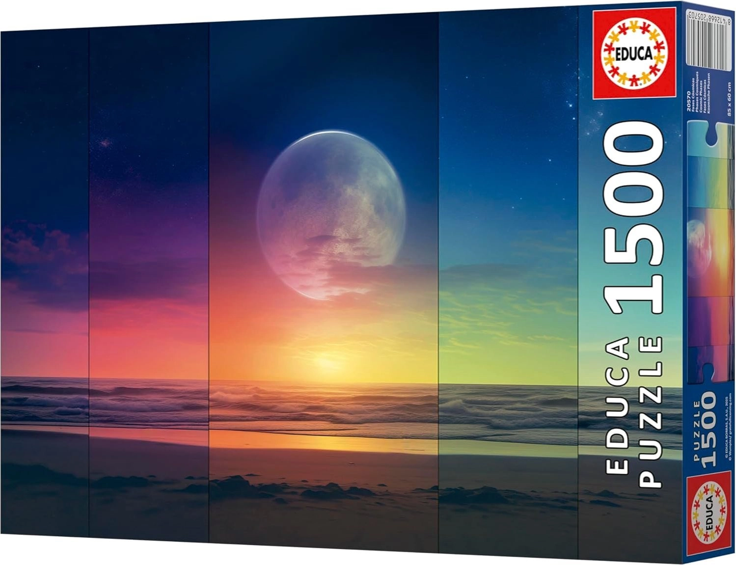 Uronite u fascinantnu tematiku kozmičkih tijela i faza s kvalitetnim puzzleom brenda Educa. Zahvaljujući preciznom izrezu i čvrstim dijelovima slaganje je glatko i zabavno, a rezultat je dojmljiva slika koju zahvaljujući priloženom ljepilu možete lako fiksirati i izložiti.