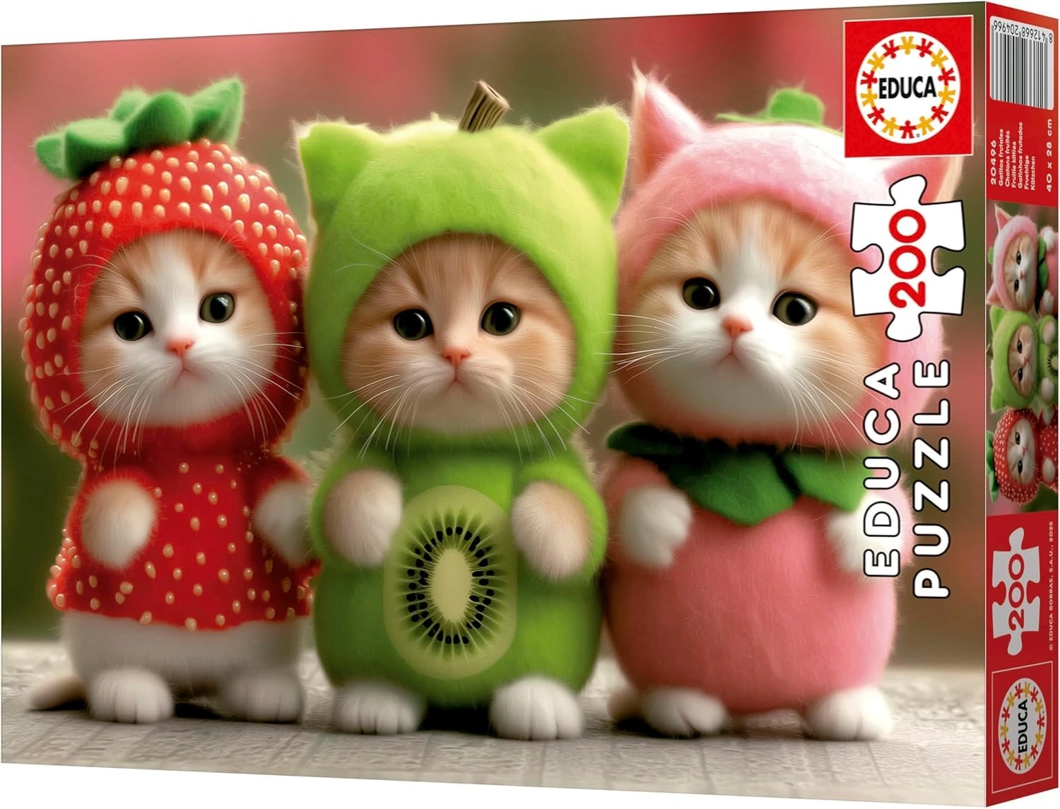 Preslatke puzzle s motivom voćnih mačkica donose zabavu za djecu i odrasle. Slagalica od 200 dijelova nudi idealnu težinu za vježbanje koncentracije, logike i fine motorike. Nakon slaganja slika ima dimenzije cca 40 × 28 cm, pa je odlična za uokvirivanje i izlaganje u dječjoj sobi.