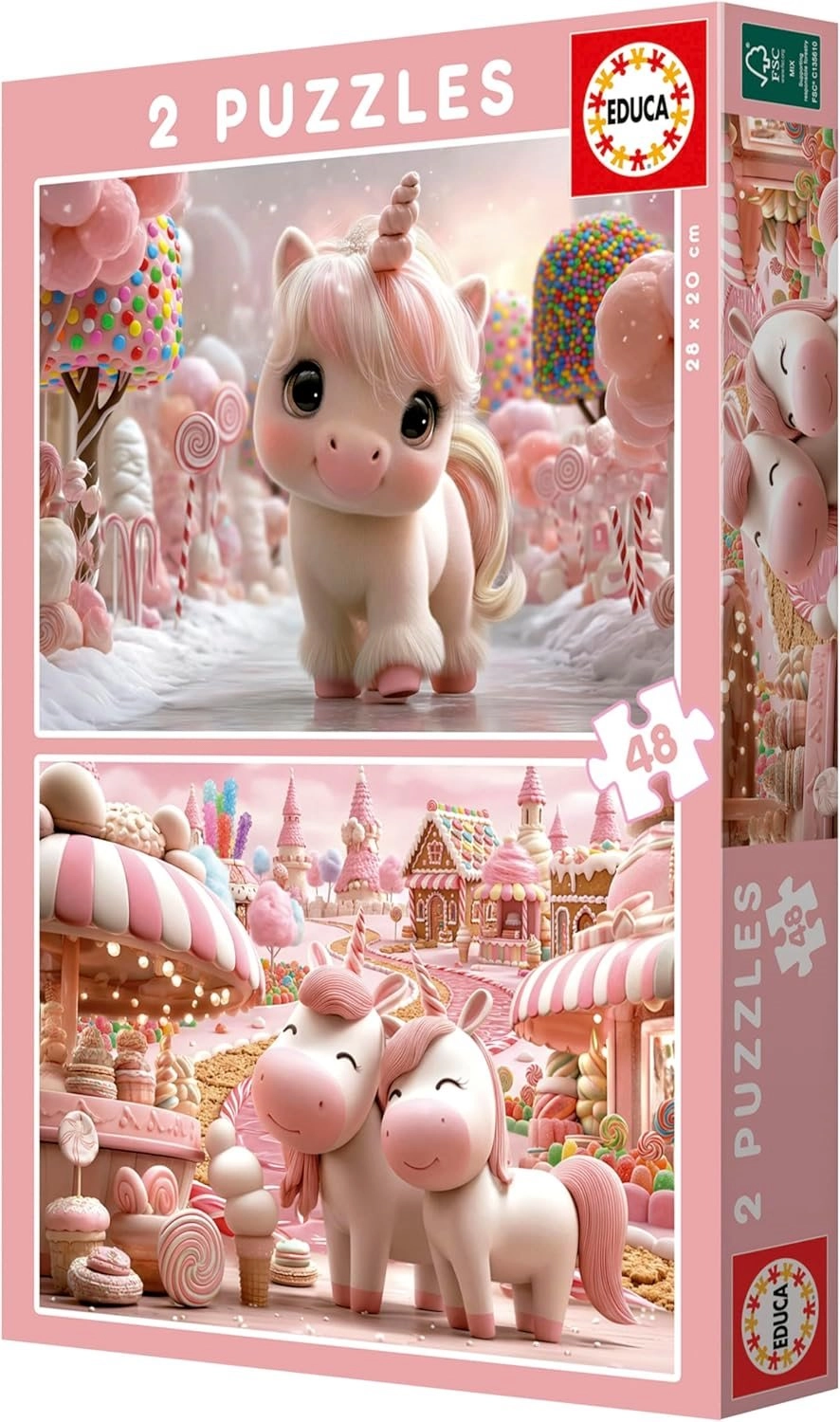Otkrijte čarobni svijet jednoroga s dvodijelnim setom puzzli EDUCA. Dvije različite slagalice s istim brojem dijelova i dimenzijama idealne su za braću i sestre ili za ponovljeno sastavljanje. Kvalitetan tisak s živim bojama i simpatične ilustracije potiču djecu na slaganje i podržavaju koncentraciju.