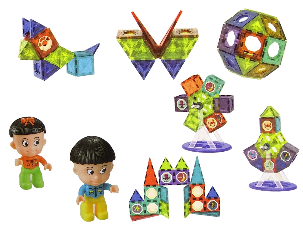 Ovaj bogati set sadrži 71 dio, uključujući specijalnu baznu podlogu s rotirajućim držačem za izradu panoramskog kotača ili vrtuljka. U paketu su i naljepnice sa životinjama, voćem i povrćem koje konstrukcijama daju razigran izgled, te dvije figurice za još zabavniju igru. Zahvaljujući snažnim magnetima i pouzdanim spojnicama nastaju stabilne 3D konstrukcije koje će djecu oduševiti na duge sate.