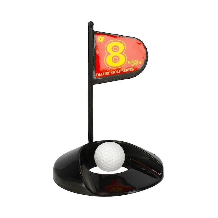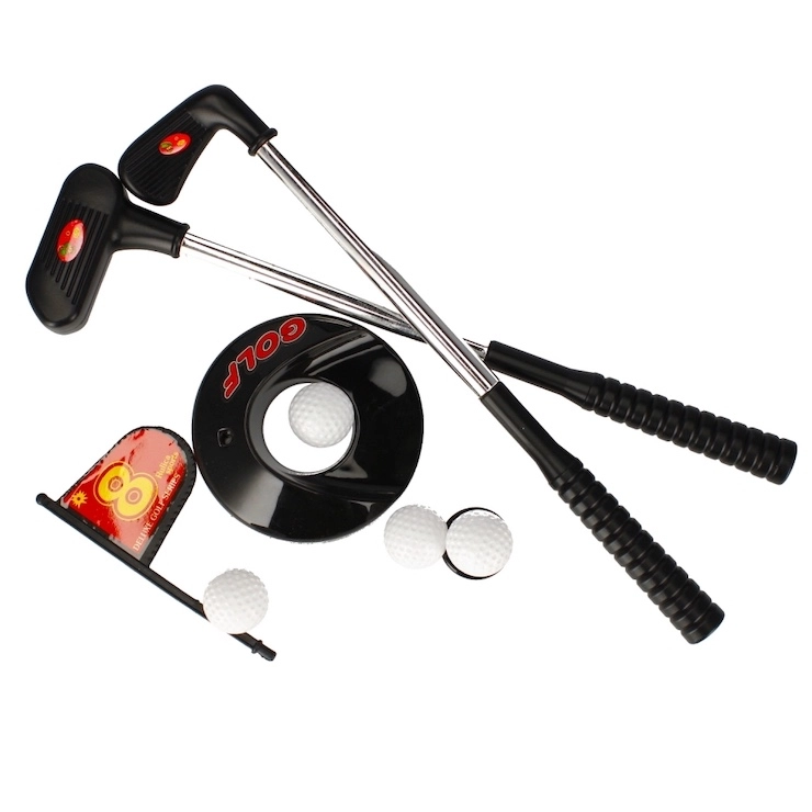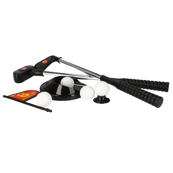 U pakiranju ćete pronaći 2 palice, 3 loptice, rupu sa zastavicom i rampu/cilj – dovoljno je rasporediti i početi igrati u kući i vani.
