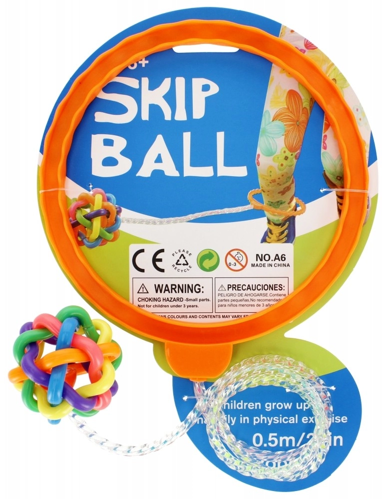 Skakaća loptica za nogu s obručem lagana je i šarena igračka koja motivira djecu na aktivno kretanje. Obruč se lako stavlja na gležanj, loptica na vrpci se zavrti, a dijete je drugom nogom preskače. Tijekom igre razvijaju se ravnoteža, spretnost i koordinacija oko–noga.