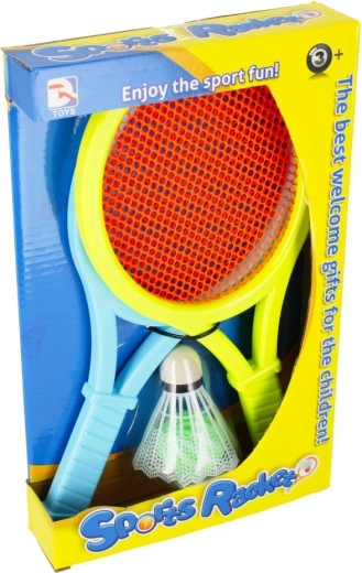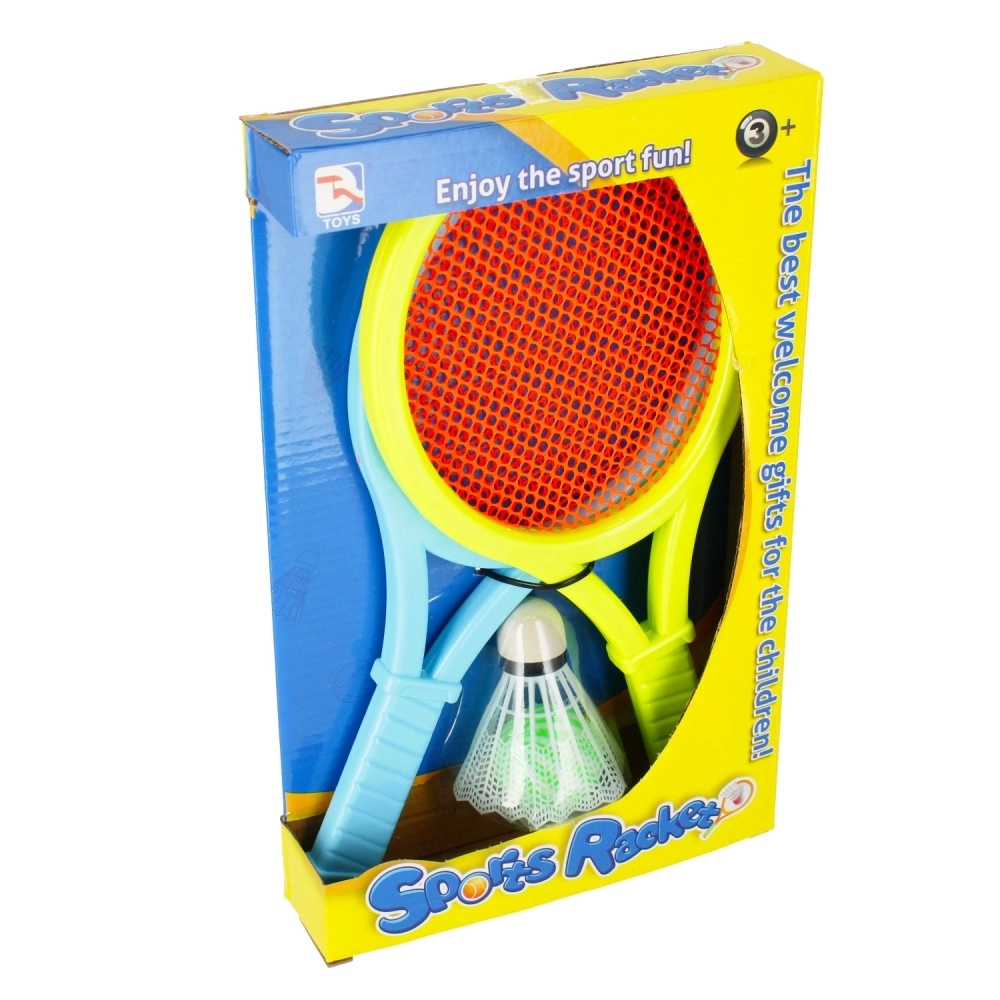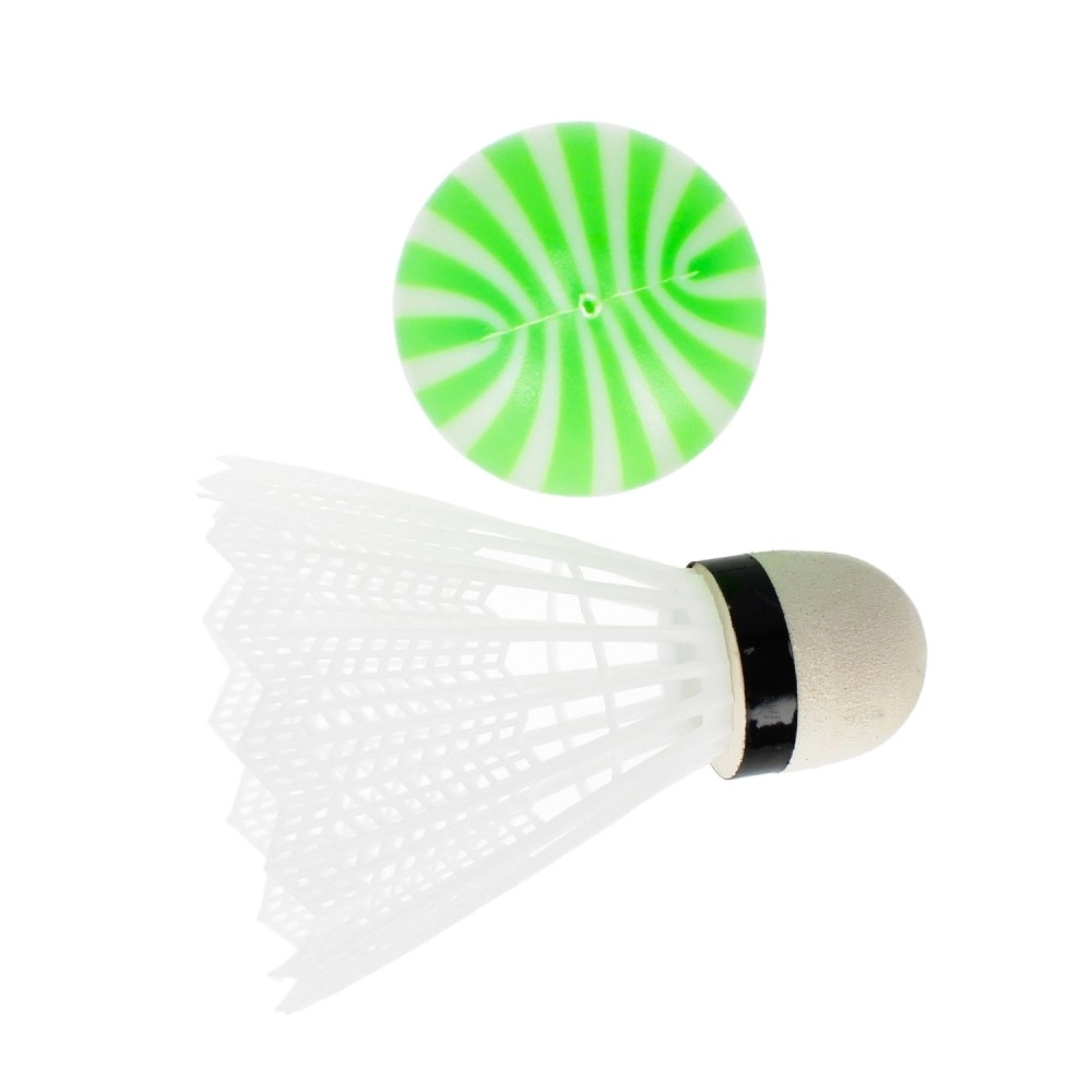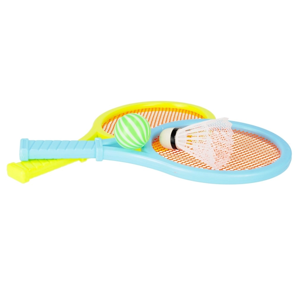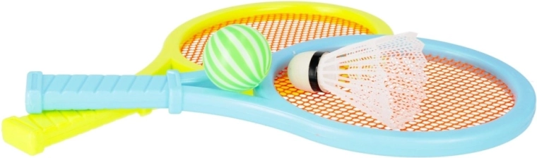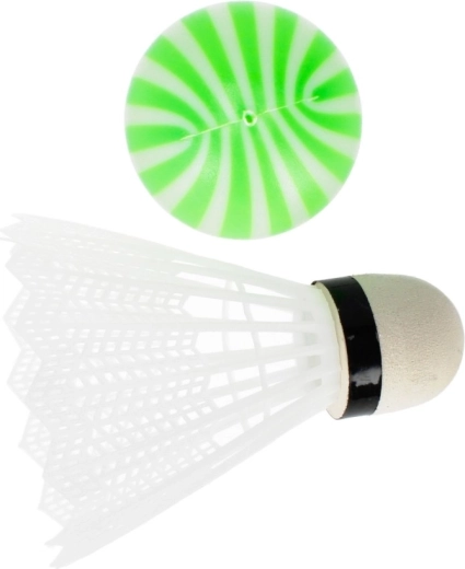 Dio pakiranja su i klasično badminton pero za živahno prebacivanje te mekana prugasta loptica, prikladna za sporiju i zabavnu igru. Set je odličan za aktivnosti na otvorenom, razvija koordinaciju oko–ruka, potiče zdravo kretanje i donosi puno radosti cijeloj obitelji.