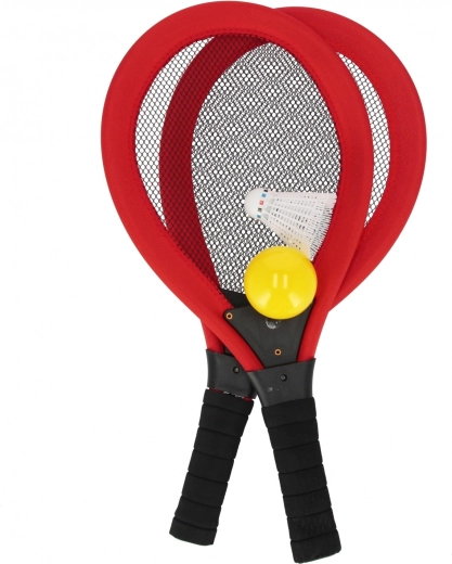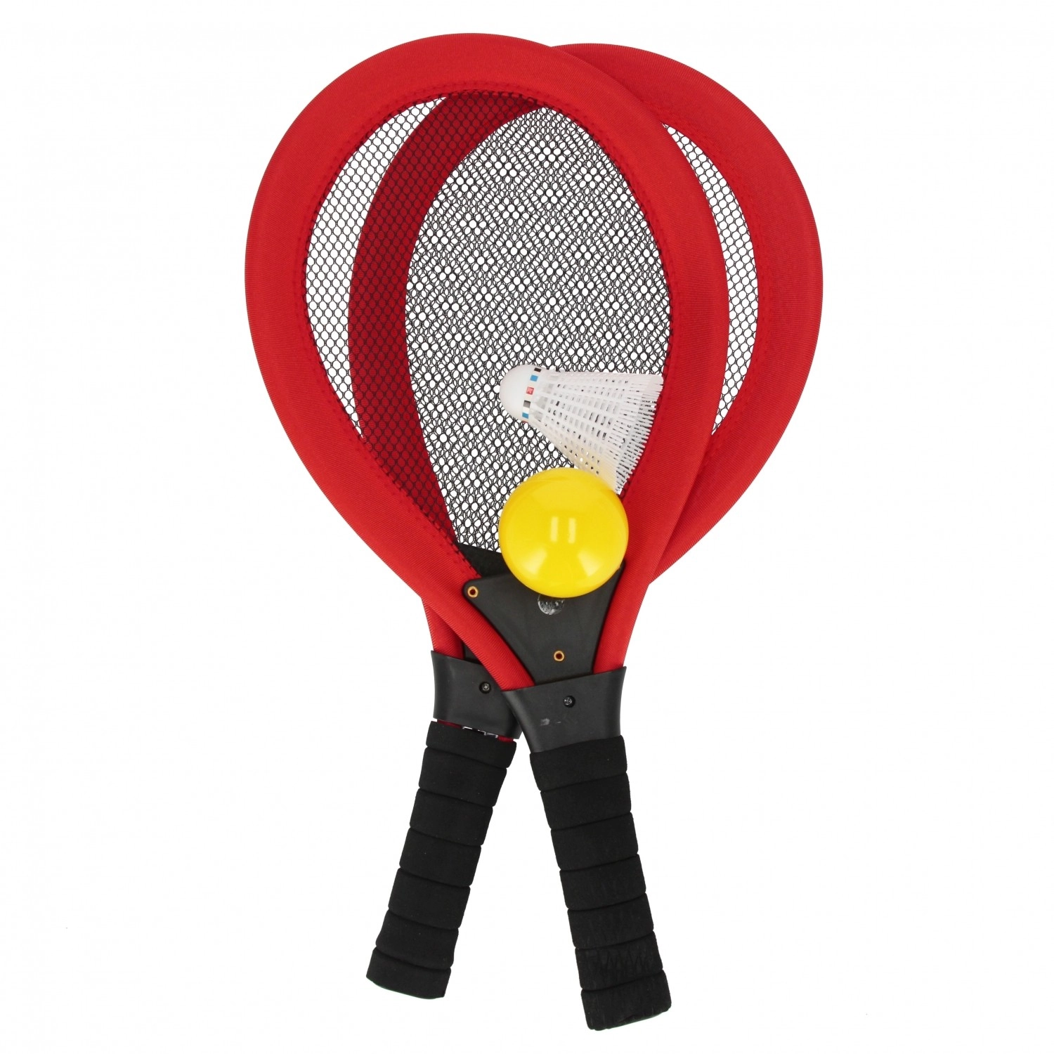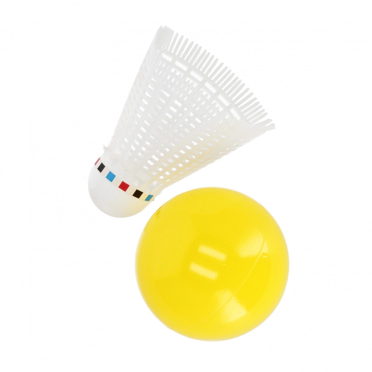 Ovaj svestrani set idealan je za prvi susret djece s reketnim sportovima. Dva lagana reketa s izdržljivom mrežastom glavom, mekana sigurna loptica i košarica (shuttle) osiguravaju mnogo zabave na otvorenom bez brige o tvrdim udarcima. Zahvaljujući kompaktnim dimenzijama i mrežastoj torbici lako ga ponesete u vrt, na igralište ili na more.