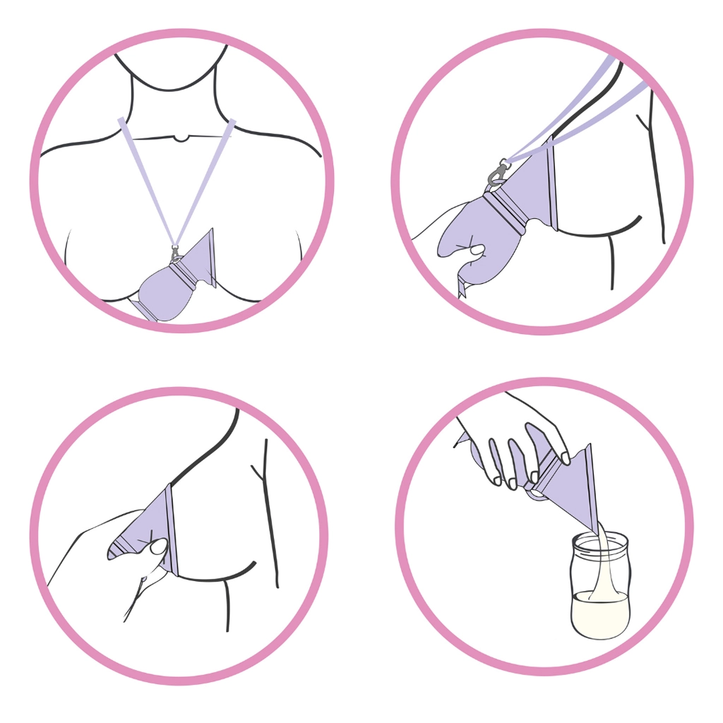 Sakupljač se nakon laganog pritiska sam pričvrsti na dojku i tijekom dojenja ili izdajanja s druge strane udobno skuplja mlijeko – bez upotrebe ruku.