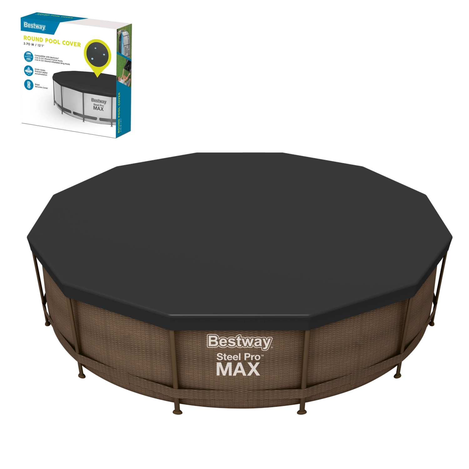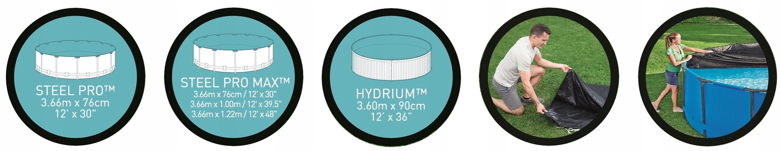 Savršeno pristaje na okrugle bazene promjera 366 cm. Kompatibilno sa serijama Steel Pro MAX, Steel Pro i Hydrium Splasher.