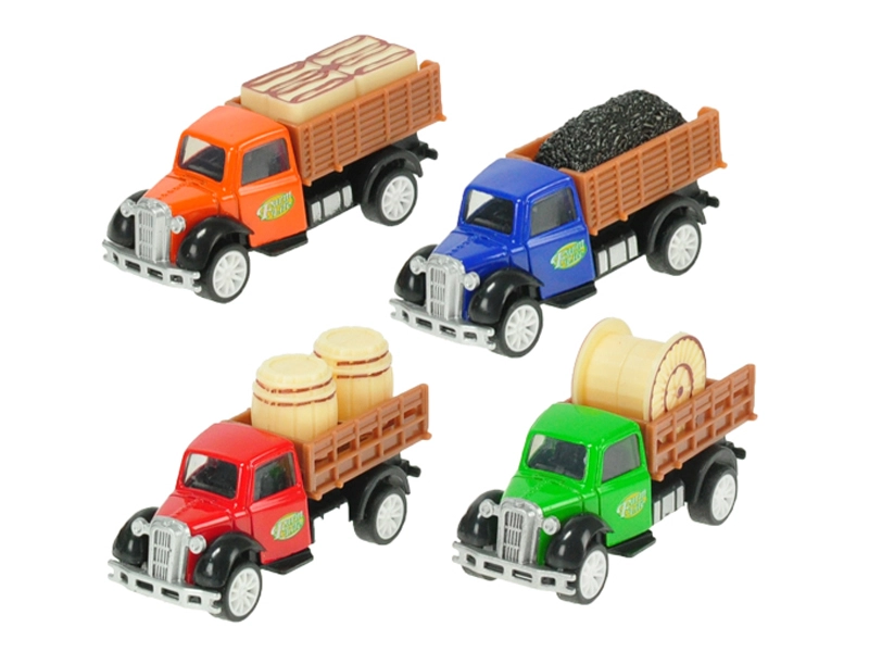 Otkrijte zabavu na farmi s kompaktnim kamiončićima koji mogu obaviti svaki zadatak. Robusna die-cast (metalna) izrada donosi izvrsnu izdržljivost, dok povratni mehanizam osigurava živahnu vožnju bez baterija – samo nategnite i pustite. Svako vozilo prevozi drugačiju vrstu tereta (bačve, kabelski bubanj, sanduci ili šljunak), pa djeca mogu razvijati maštu pri utovaru, istovaru i prijevozu.