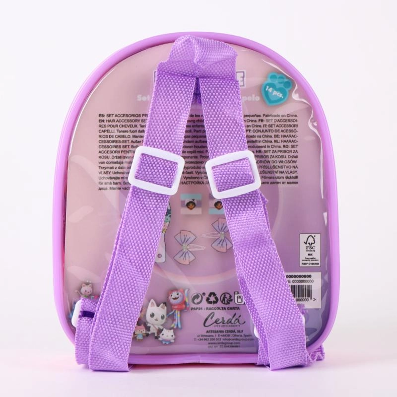 Otkrijte kreativni svijet GABBY DOLL'S HOUSE s ovim čarobnim setom dodataka za kosu u slatkom ruksaku. Djeca će obožavati igru frizera i lako napraviti stylish repiće, pletenice i svečane frizure. Lagani ruksak služi kao praktično spremište svih dodataka i savršen je za izlete i posjete.