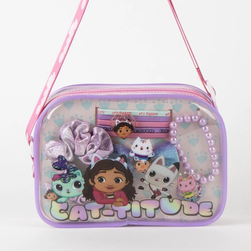 Presladak set dodataka za kosu u praktičnoj torbici oduševit će sve male obožavateljice GABBY DOLL'S HOUSE. U njoj ćete naći ukosnice, gumice, modernu scrunchie i usklađenu narukvicu – sve za svakodnevne frizure i razigrane kombinacije.