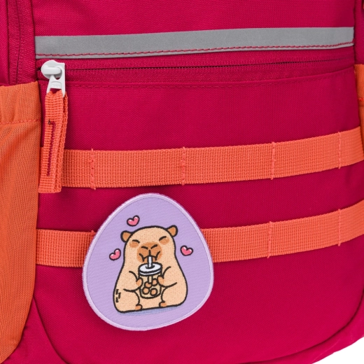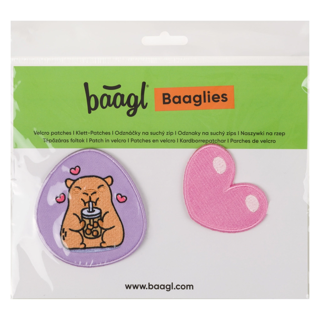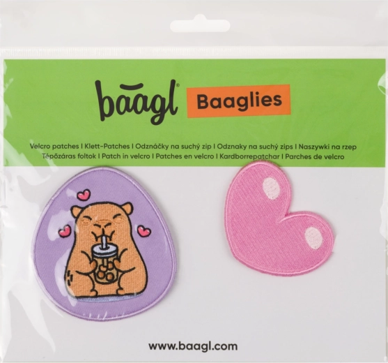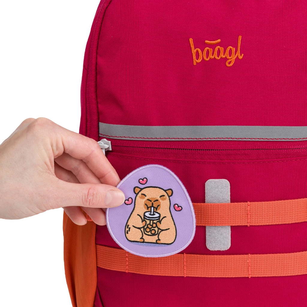 Stilski bedževi BAAGLIES s motivom kapibare brzo mijenjaju izgled školske torbe ili ruksaka BAAGL. Zahvaljujući čičku lako ih mijenjate prema raspoloženju, potičete originalnost i dječju maštu. Varijabilan dodatak s više od 70 motiva osigurava da ruksak nikada ne dosadi.