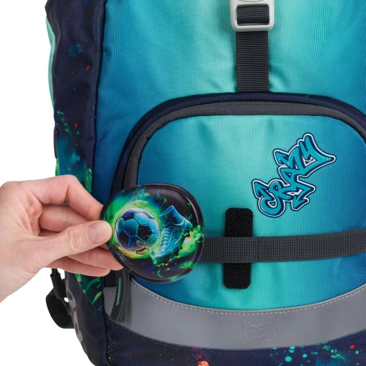Stilski bedževi BAAGLIES s nogometnim motivom oživjet će svaku aktovku ili ruksak BAAGL. Zahvaljujući pričvršćivanju na čičak traku lako ih možete mijenjati prema raspoloženju, poduprijeti originalnost i djeci pružiti beskrajne mogućnosti personalizacije.