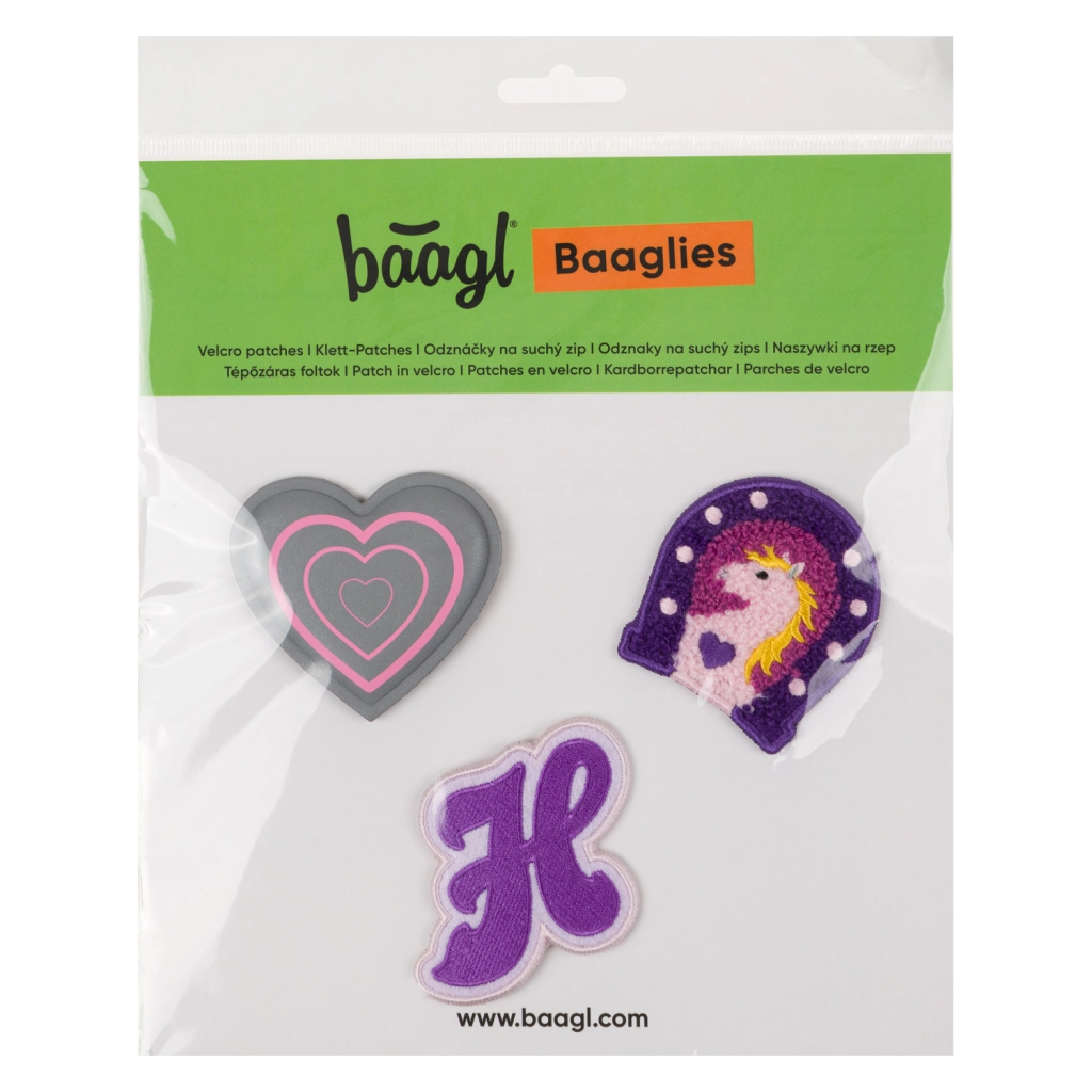 Set od tri razigrane našivke/bedža BAAGL Baaglies s motivima konja i srca pretvorit će svaki ruksak u originalan komad. Dovoljno ih je pričvrstiti na pripremljene trake ili panel s čičak trakom i u trenu promijeniti stil. Savršeno za djecu koja vole izražavati svoju osobnost.