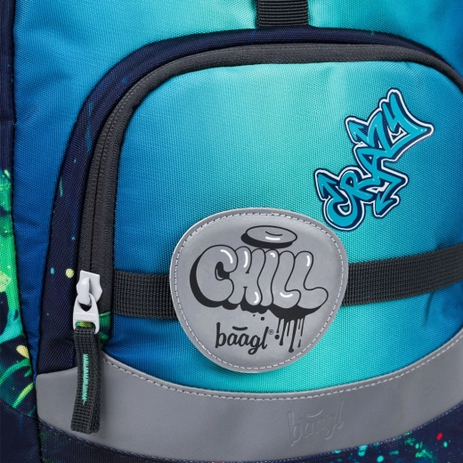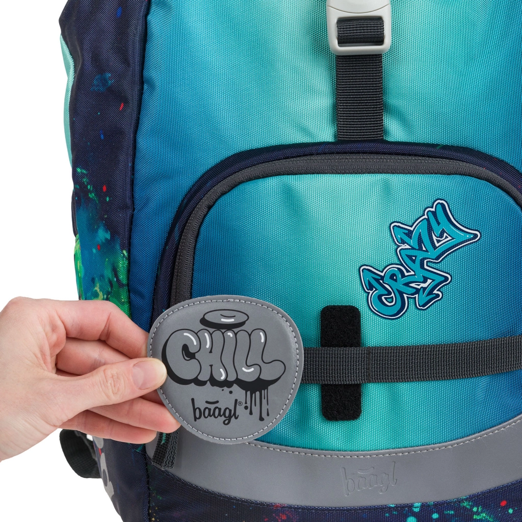 Osvježite školsku aktovku ili ruksak setom bedževa BAAGL Baaglies s motivom Chill Hands Up. Zahvaljujući čičak traci zamjena je brza i jednostavna, pa djeca mogu lako personalizirati svoj stil prema raspoloženju. Zaigran dizajn, mnoštvo motiva i beskonačne mogućnosti kombiniranja jamče da ruksak nikada neće dosaditi.