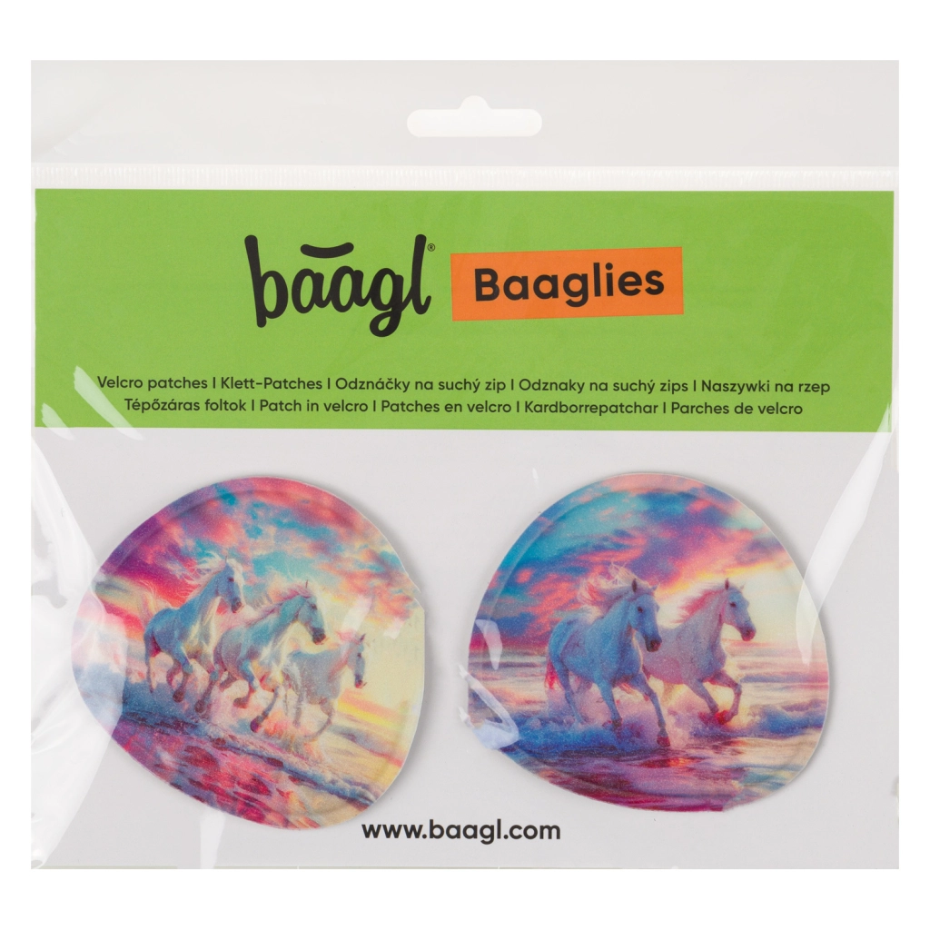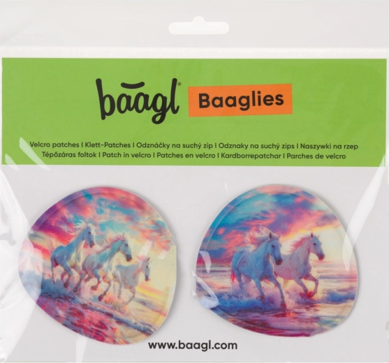 Zamjenjive značke BAAGLIES sjajan su način za brzo i zabavno uređivanje izgleda školskih torbi i ruksaka BAAGL. Motiv Čarobni konji razveselit će sve ljubitelje mašte i elegantnih dodataka. Ugradnja je pitanje trenutka – dovoljno je pričvrstiti pomoću čička i u bilo kojem trenutku promijeniti dizajn.