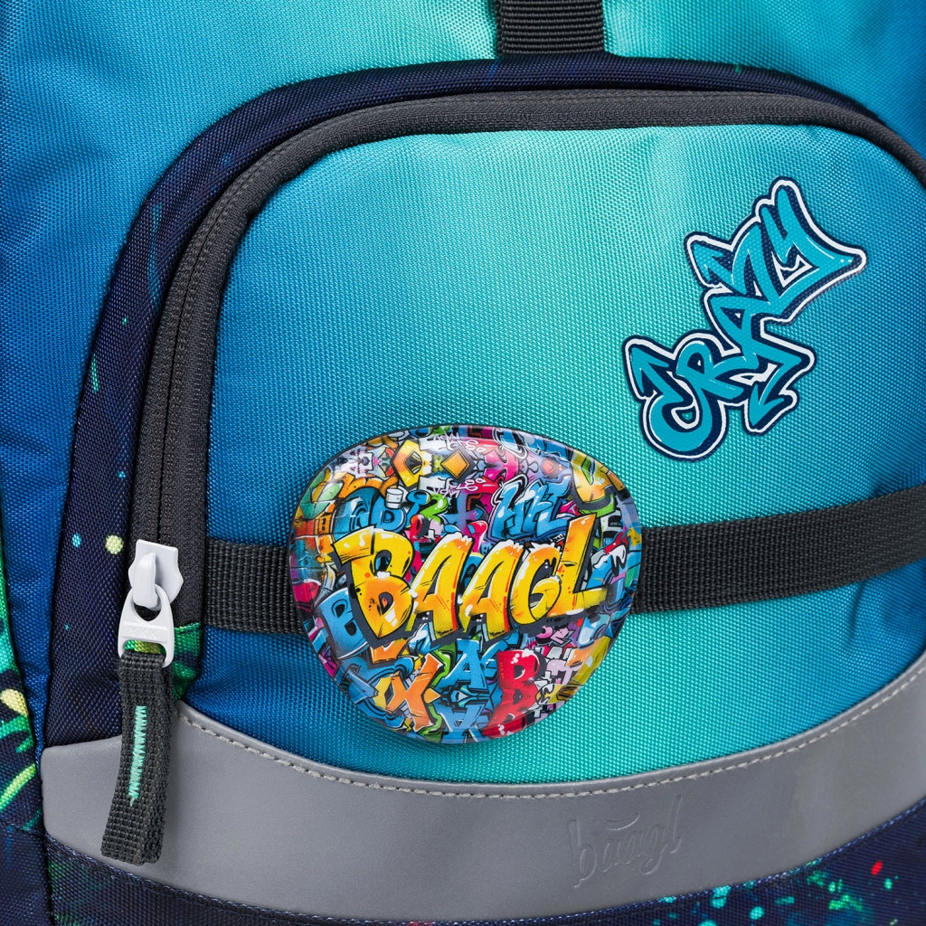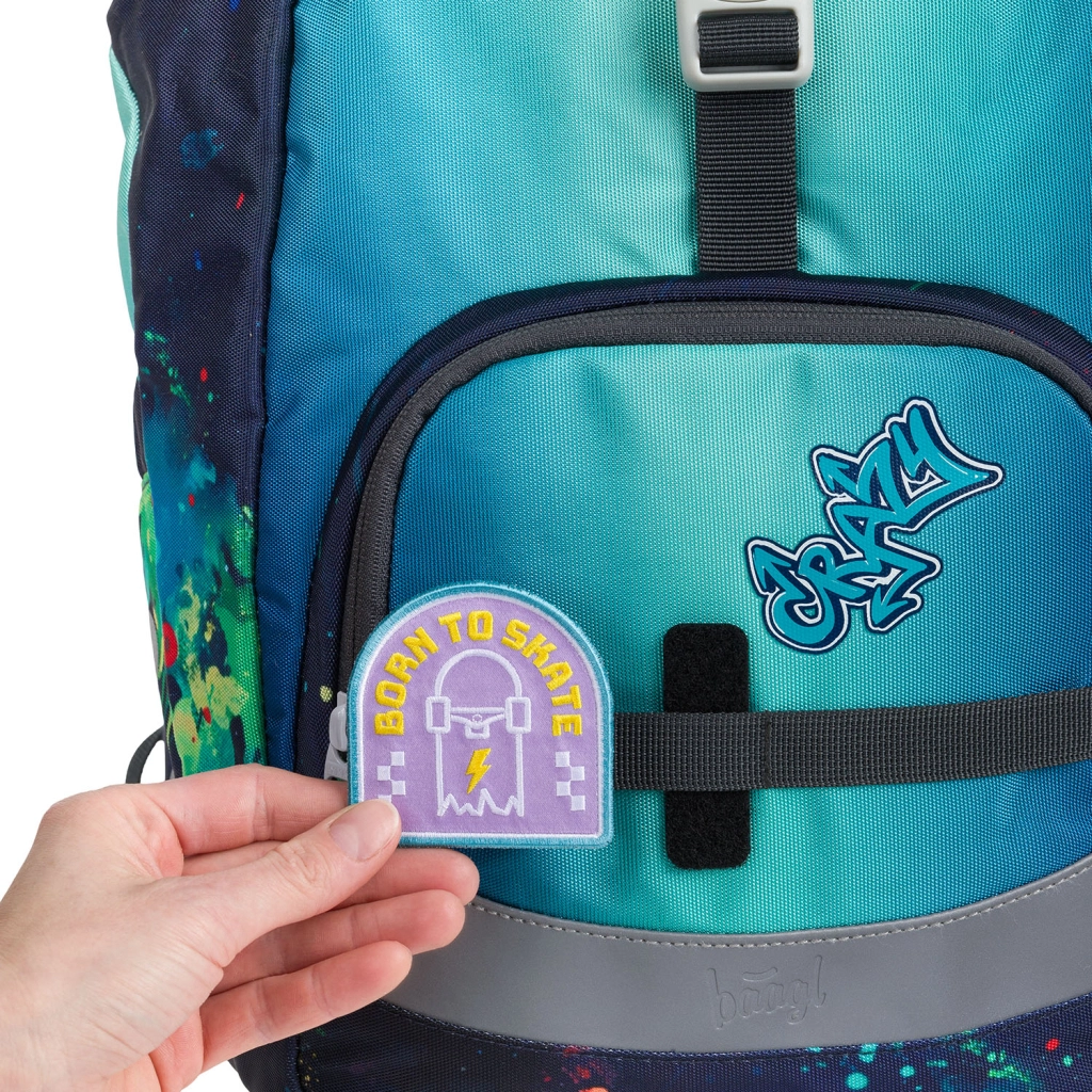 Oživite školsku aktovku ili ruksak uz set zamjenjivih značkica BAAGL Baaglies s motivom Skate Park Wall. Jednostavno pričvršćivanje na čičak omogućuje brzu izmjenu prema raspoloženju i interesima djeteta. Razigran dizajn potiče kreativnost, laku personalizaciju i jamči da ruksak neće brzo dosaditi.