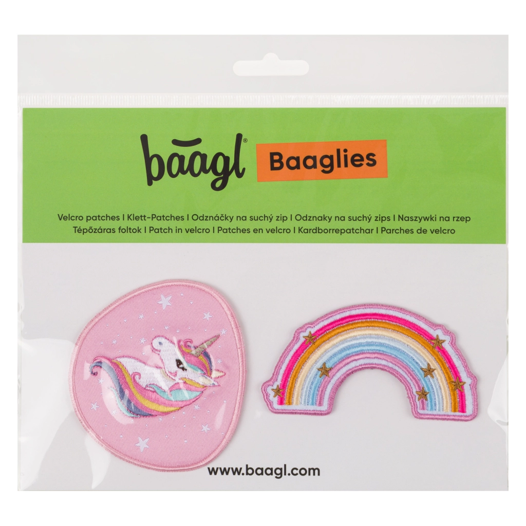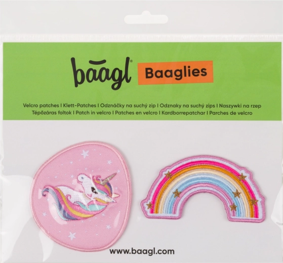 Značkice BAAGLIES razigran su način za brzu promjenu dizajna BAAGL aktovki i ruksaka. Ugradnja je uz čičak traku pitanje trena – samo pričvrstite i gotovo. Motiv Rainbow Unicorn razveselit će sve ljubitelje boja i čarobnog svijeta jednoroga.