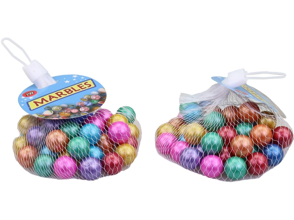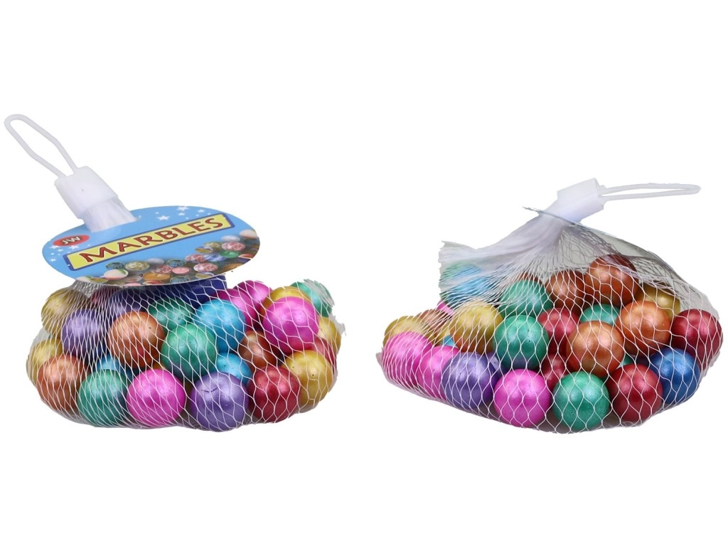 Svaka kuglica ima promjer 1,5 cm, što je udobna i sigurna veličina za male igrače. Pakiranje od 40+1 kom idealno je za klasične igre s kuglicama i natjecanja s prijateljima. Jednostavno spremanje i prenošenje omogućuje mrežasta vrećica s vezicom.