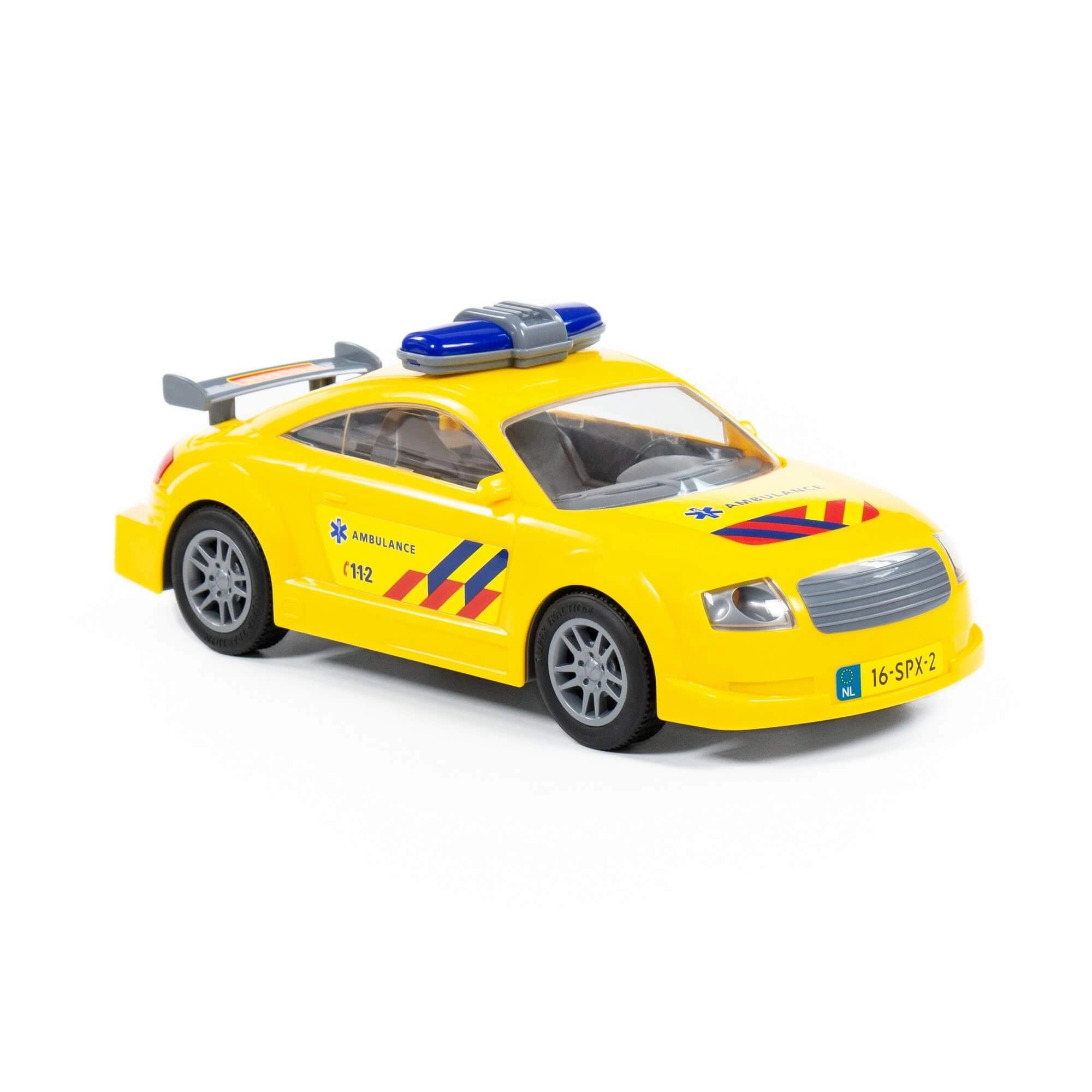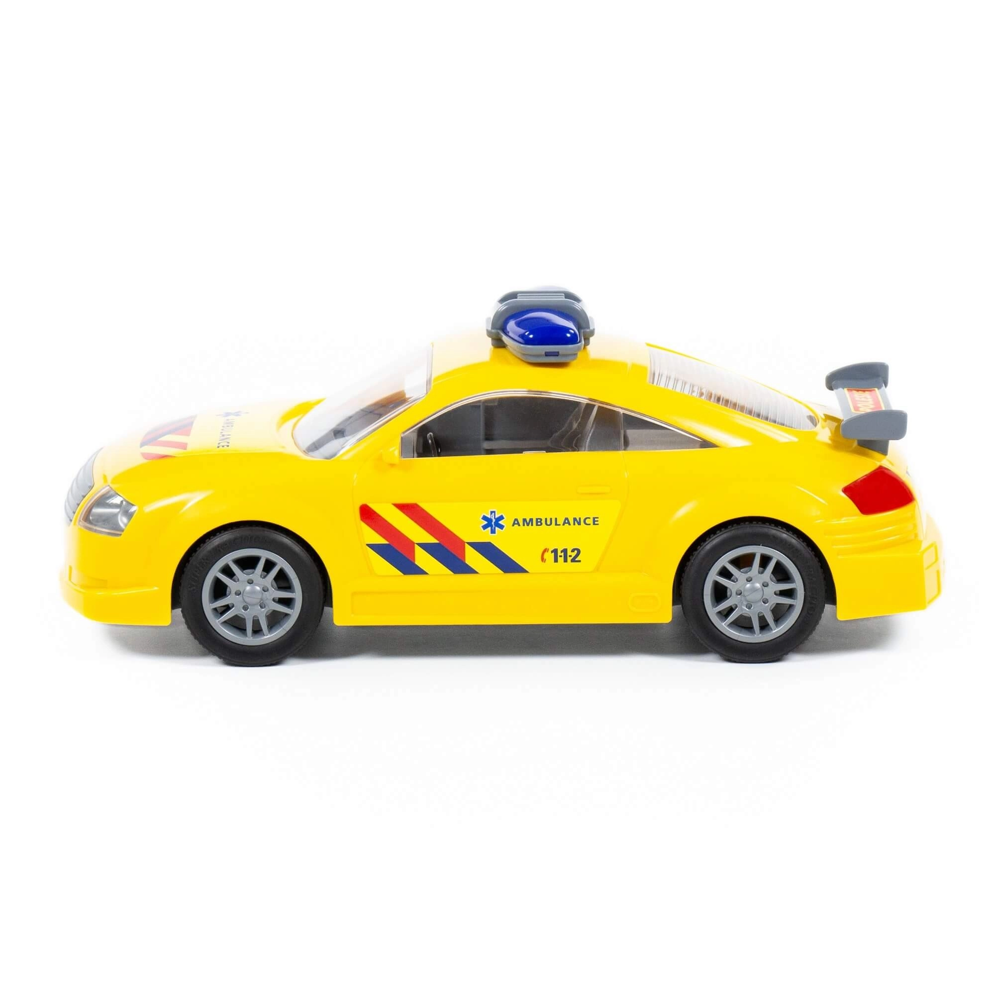 Žuti plastični spasilački autić na inercijski pogon donosi djeci dinamičnu igru punu spasilačkih misija. Dovoljno ga je pogurnuti i zahvaljujući inerciji sam će krenuti. Izdržljiva izrada, uočljivi natpisi AMBULANCE i broj 112 potiču maštu i realistično igranje uloge spasilaca kod kuće i na otvorenom.