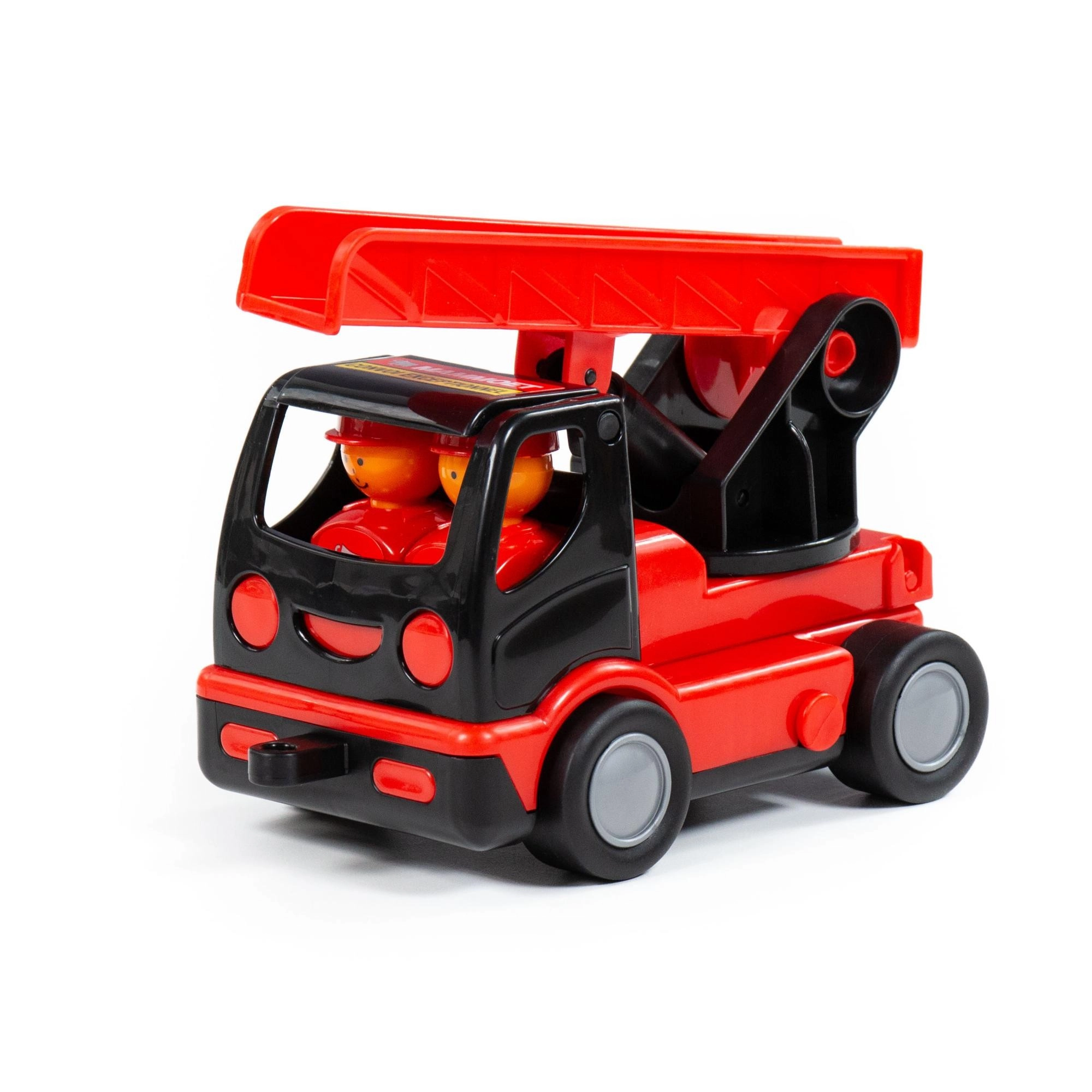 Kotači s slobodnim okretanjem za glatku vožnju i mogućnost stavljanja figurica u kabinu potiču igru uloga i pričanje priča.