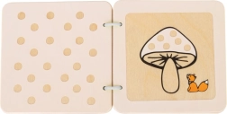Zahvaljujući kompaktnim dimenzijama 9 × 9 × 2,5 cm knjižica je idealna za dom i za putovanja. Prirodni materijal je lako periv i prikladan za svakodnevnu igru. Knjižica pomaže djeci razvijati osjet dodira, vizualnu pažnju i koordinaciju oko–ruka na zabavan način.
