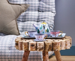 U pakiranju je sve za savršenu čajanku: veliki poslužavnik za lako posluživanje, 4 šalice s tanjurićima, 4 desertna tanjura i čajnik s poklopcem. Dijelovi su lagani, izdržljivi i jednostavni za održavanje. Dizajn Michelle Carlslund s prijateljskim životinjama potiče dječju maštu i nježno razvija socijalne vještine kroz zajedničku igru.